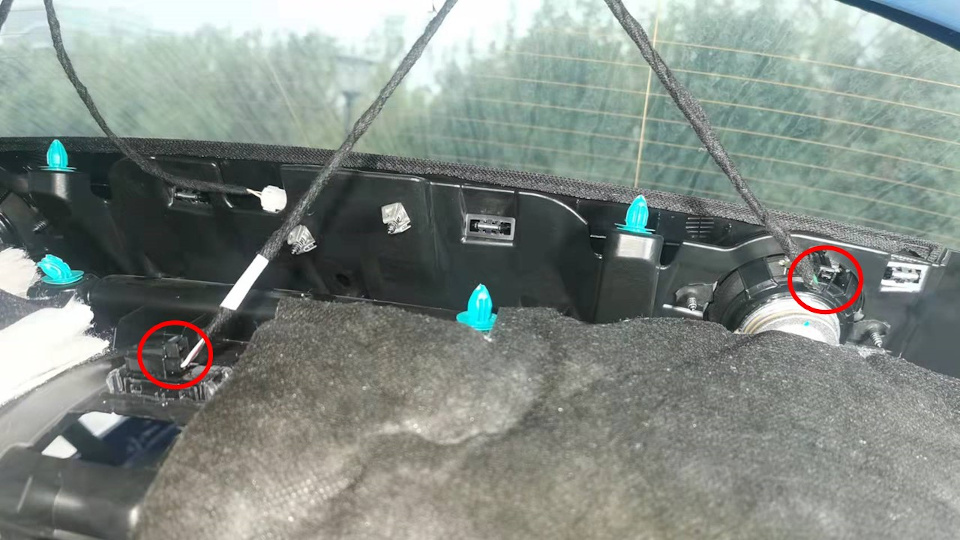 - Use a piece of felt tape to attach the clips to the liftgate lower finisher. Do not use grease or glue to secure the clips.
