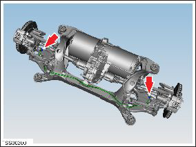 - Install the bolts (x2) that attach the brackets to rear subframe (torque 70 Nm).