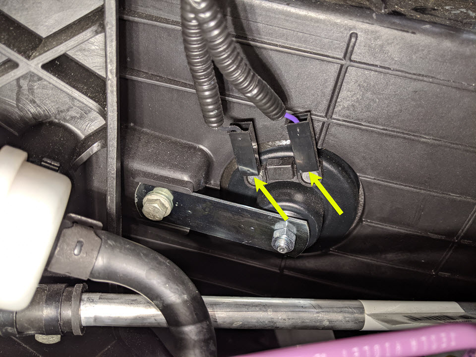 - Disconnect the LH horn electrical connectors. Repeat this step for the RH horn.