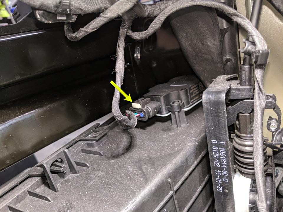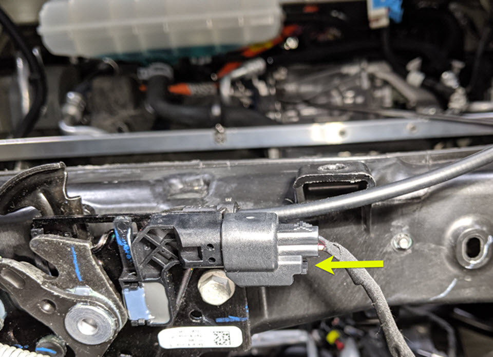 - Release the edge clip using a clip prytool, and then disconnect the RH side hood actuator electrical connector.