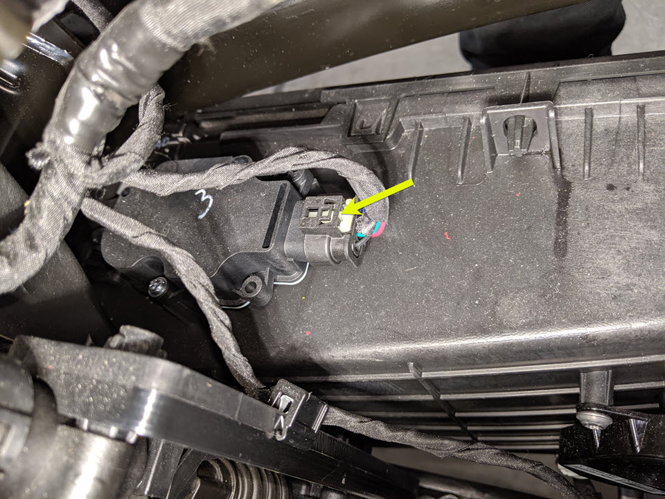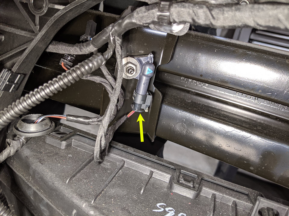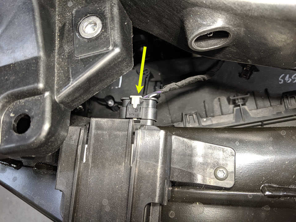 - Disconnect the RH radiator actuator electrical connector using a small flat head screwdriver.