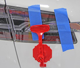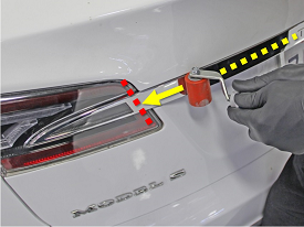 - Carefully release the adhesive tape that attaches the applique to the fog/reverse lights.