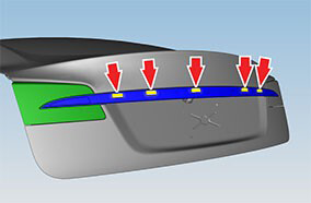 fasteners (x5) that secure the applique to the liftgate body panel.