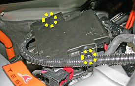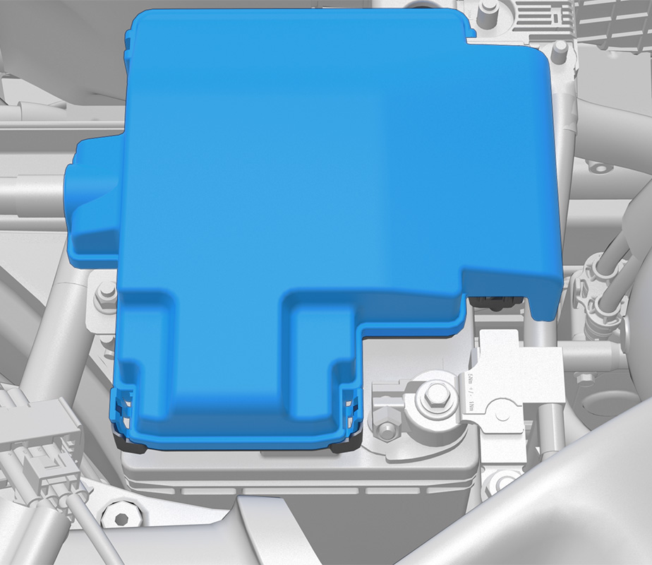 - Remove the nuts (x2) that secure the fuse box cover (torque 3 Nm).