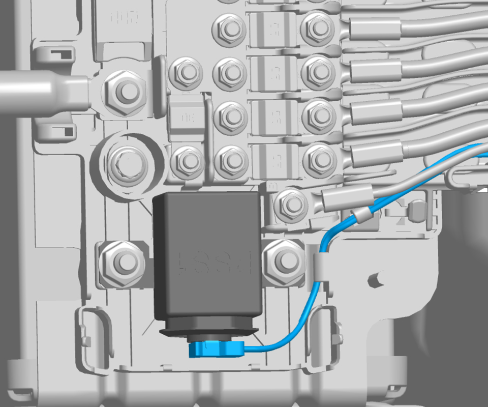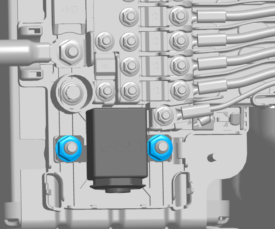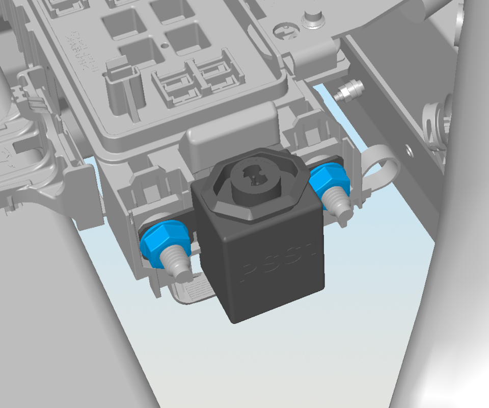 - Remove the nuts (x2) that secure the pyrotechnic battery disconnect (torque 12 Nm).