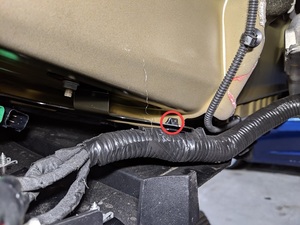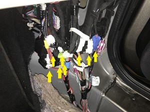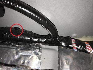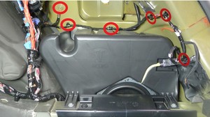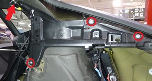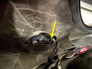 - Release the bolt (torque 10 Nm) and clips (x5) that attach the RH body harness to the RH quarter panel area.
