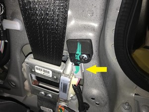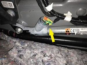 - Disconnect the RH seat belt reel connector and put the harness aside.
