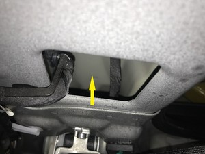 - Remove the bolt (torque 10 Nm) that attaches the headliner and support strap to the RH C-pillar.