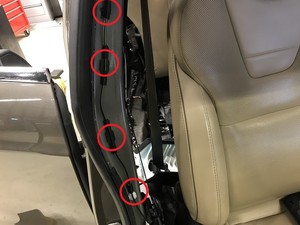 - Release the RH B-pillar seals from the applique and body along the length of the applique.