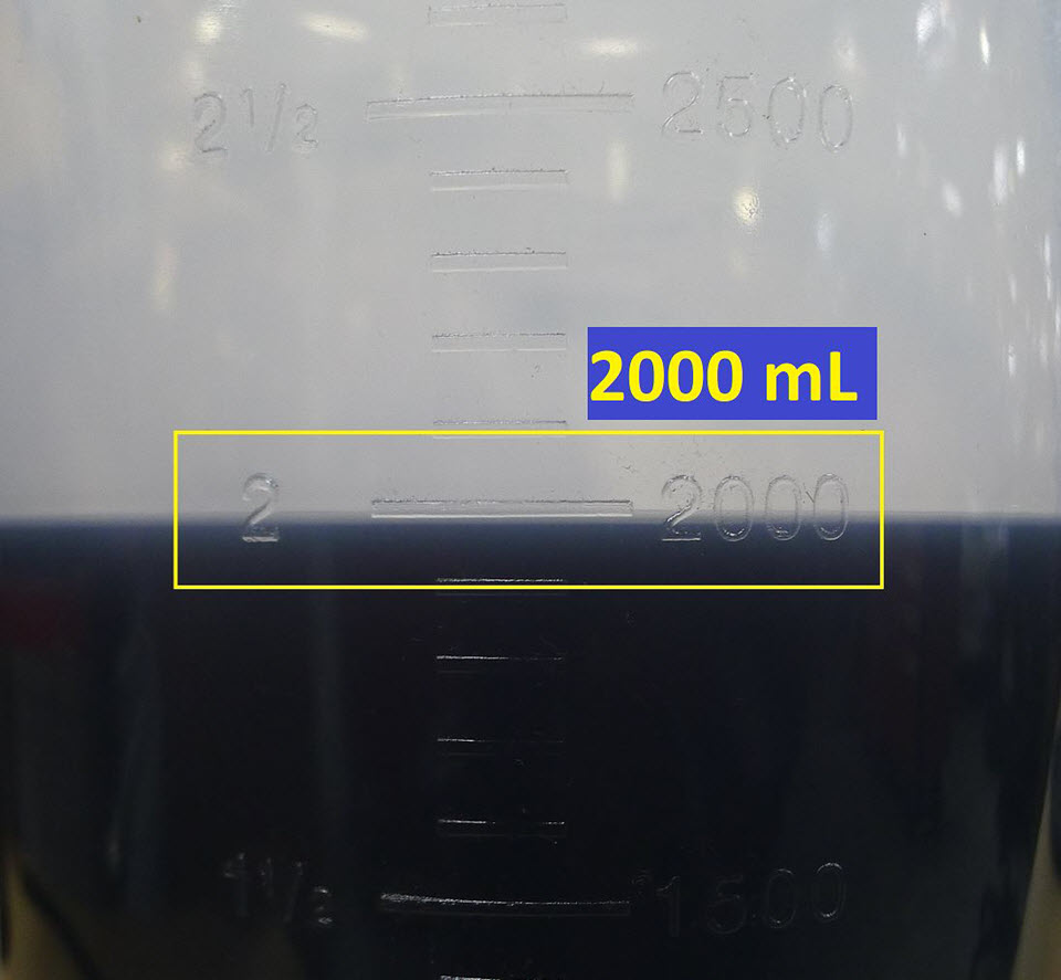 - Using the measure and fill kit, fill the container with 2000 mL of gearbox fluid. See Fluids for required gearbox fluid.