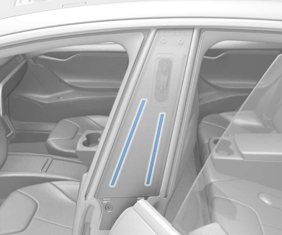 - Slide the B-pillar trim panel up into the clips, and then press the B-pillar trim panel into the B-pillar to secure double-sided tape.