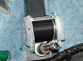 - If the seat belt reel was secured to the body with a bolt that had adhesive patch material, thoroughly clean the female threads in the rear node and replace the bolt with one that does not have adhesive patch material.