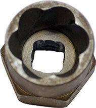 CAUTIONThis bolt is particularly difficult to remove on vehicles built before approximately October 1st, 2013. If the vehicle was built before approximately October 1st, 2013, refer to the steps and information below to reduce the risk of breaking the bolt during removal.NoteThe preferred method of removing the bolt is to use an inductive heater to melt the adhesive patch material:WarningPersons that have a pacemaker or any other kind of electronic or metal surgical implant must stay at least 1 m (3 ft) away from the inductive heater while it is in use.WarningRemove all metallic items (such as coins, keys, electronics, and tools) from pockets before using the inductive heater.WarningEnsure that there is a properly-maintained fire extinguisher in the work area before using the inductive heater.WarningUse the inductive heater in a well-ventilated area.NoteIf an inductive heater is not available, use a 19 mm spiral-fluted bolt extractor to apply extra torque to the bolt head:NoteIf the bolt head breaks off of the shaft:CAUTIONPerform the following procedure to reduce the risk of damaging the threads. If the threads are damaged on a vehicle with a 2nd generation rear node, the vehicle must be sent to a Tesla Approved Body Shop. Primer Free Heli-Coil inserts can be used to repair the 2nd row lower seat belt threads in vehicles with a 1st generation rear node. Refer to TN-15-92-001, "Installing Heli-Coil Inserts".