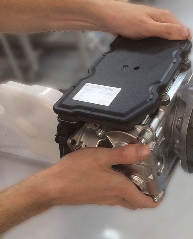 CAUTIONUse extreme caution when handling the electromechanical brake booster assembly.CAUTIONThe electromechanical brake booster can only be supported by the ECU housing, adapter plate, and metal housing.