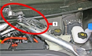 - Move the wiper motor assembly back into position, and then install the bolts (x3) that secure the wiper motor assembly to the bulkhead (torque 6 Nm).