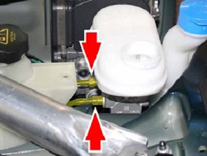 the front and rear hydraulic lines to the master cylinder (torque 20 Nm).