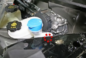 - Remove the clip that secures the LH side of the washer fluid reservoir to the crossmember.