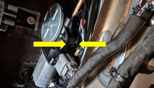 - Disconnect the tuner connectors (x3), release the edge clip, and then move the harness away for clearance.