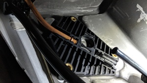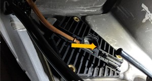 - Remove the black return tube from the LH sunroof motor block.