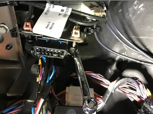 - Install the bolts (x3) that attach the tuner bracket to the instrument panel (torque 6 Nm).