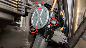 - Remove and discard the bolts (x3) that attach the RH sunroof motor to the motor block.