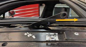 - Mark the location of the panoramic roof front left link relative to the panoramic roof frame.