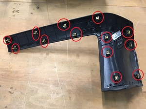 - Install the clips (x7) that attach the LH front console side panel.