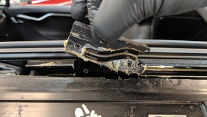 - Slide the panoramic roof rear left link back, past the frame channel.