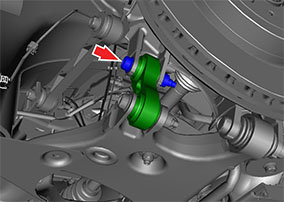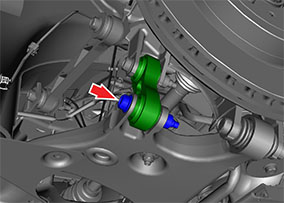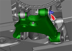 CAUTIONTo prevent ball joint damage, always hold the ball joint pin with a wrench while loosening or tightening the lock nut.CAUTIONOnly fully tighten suspension nuts and bolts when the vehicle is on a 4-post lift and the suspension is in the ride height position. -