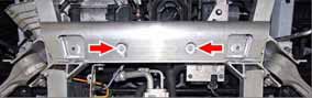 - Remove and discard the inner bolts (x2) that secure the skid bar to the front subframe (10 Nm).