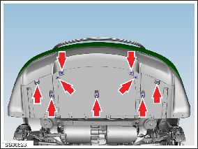 - Remove the nuts (x3) that secure the rear diffuser panel to the body (torque 3 Nm).