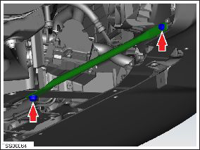 - If equipped, release the bolts (x2) that secure the front bumper support bar (torque 11 Nm). Remove the bar from the vehicle.