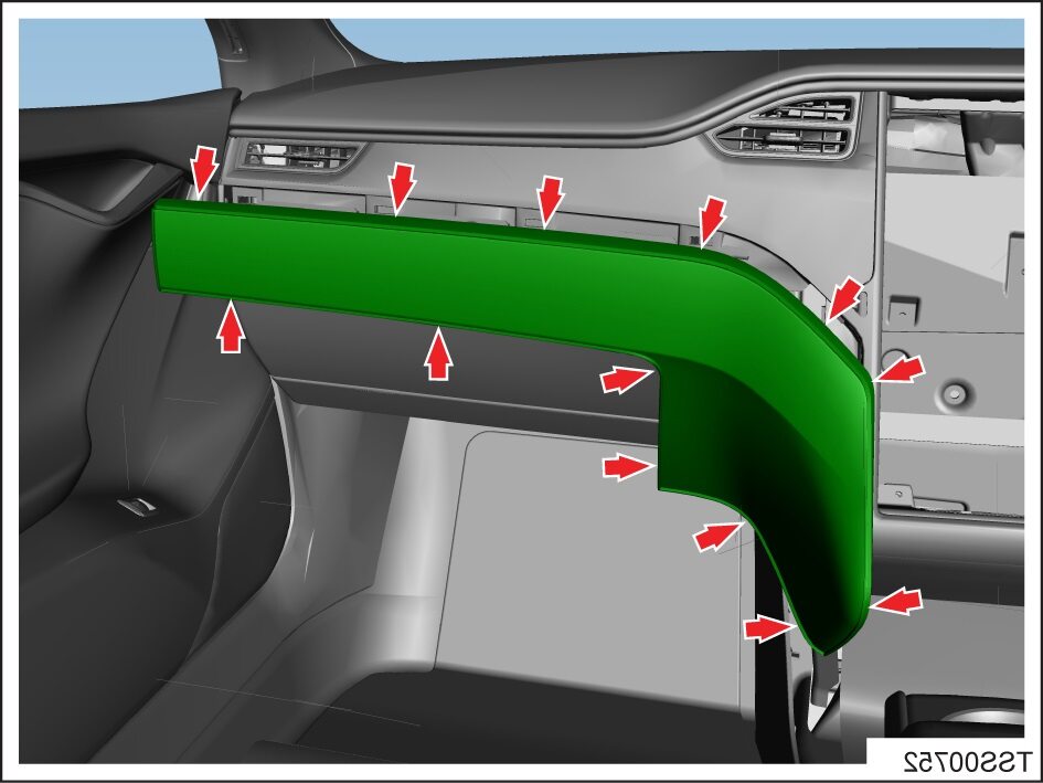 Remove screws securing LH side instrument panel finisher assembly to the IP carrier