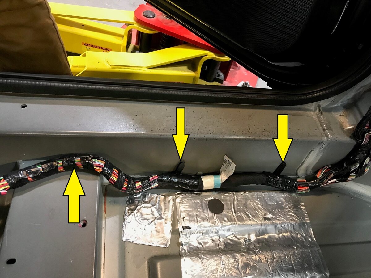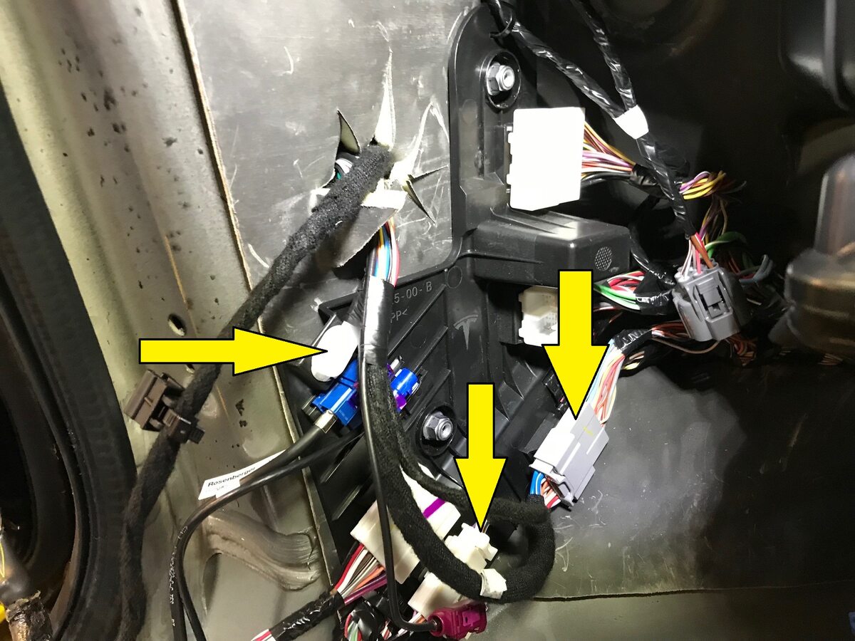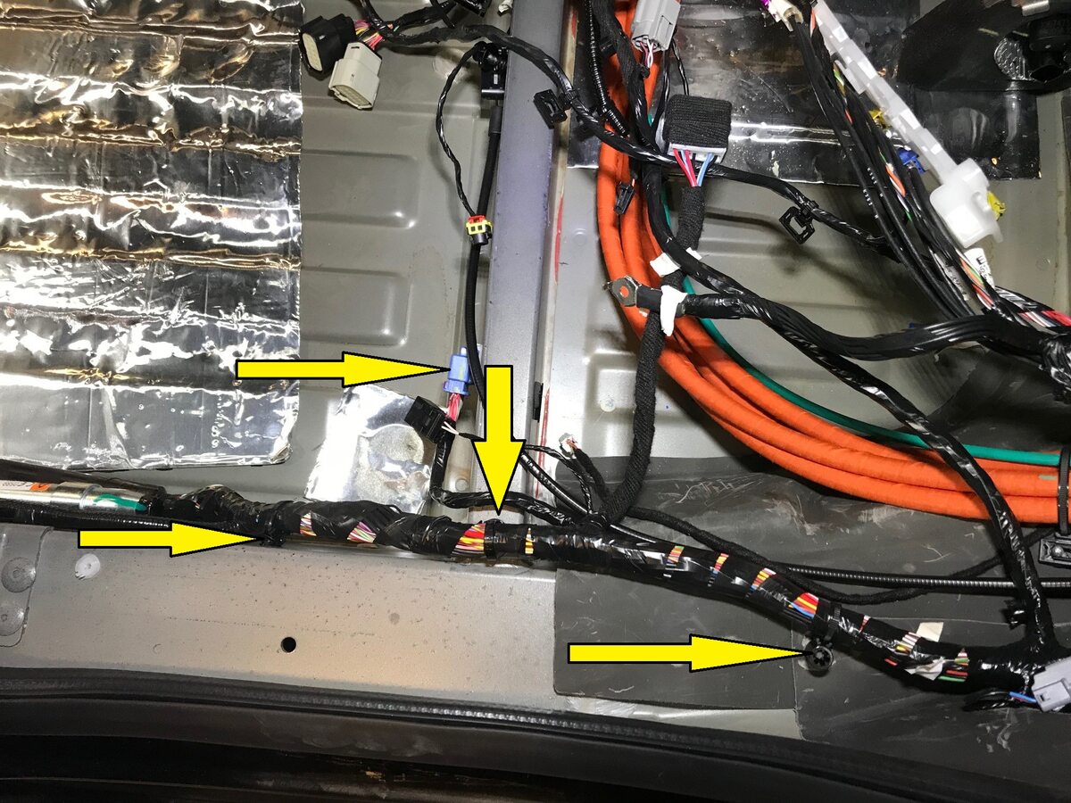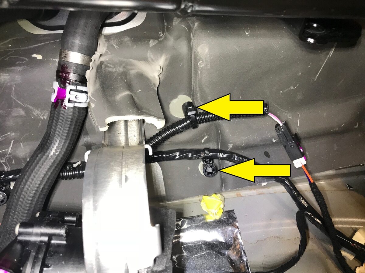 Note3x connectors, 2x harness clips, Tuck excess harness under carpet to prevent NVH concern