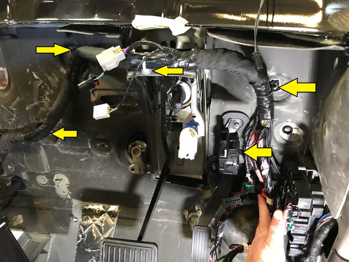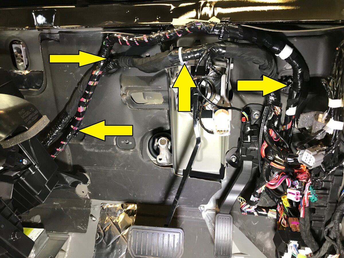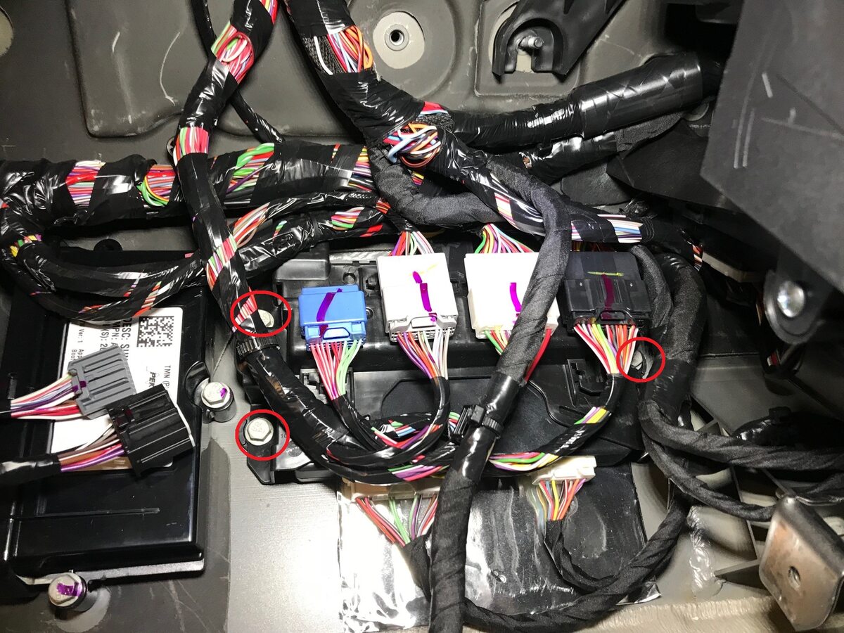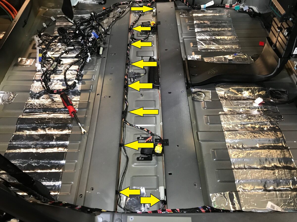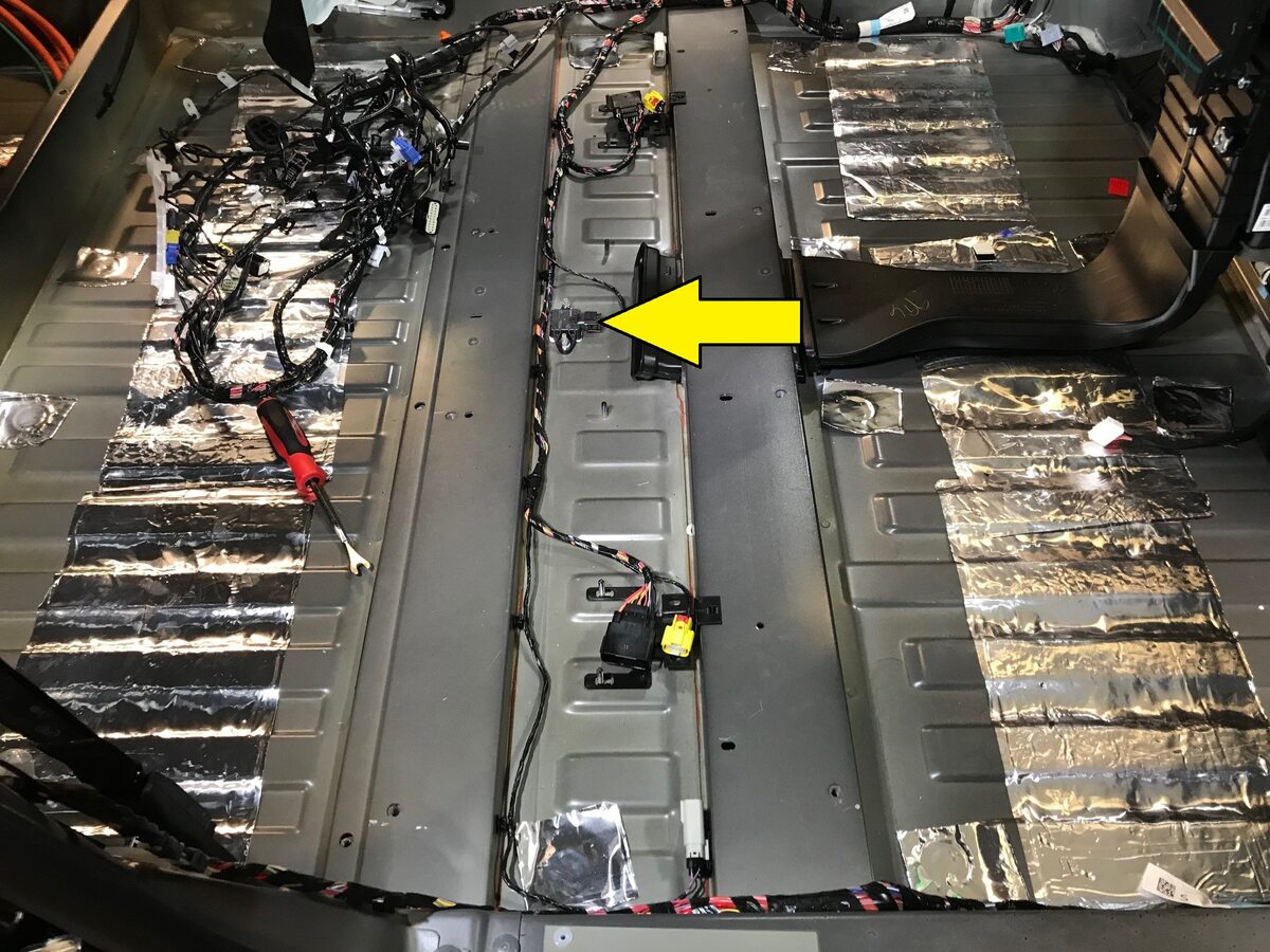 Note3x connectors, 2x harness clips, Tuck excess harness under carpet to prevent NVH concern