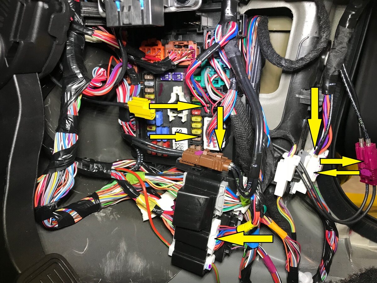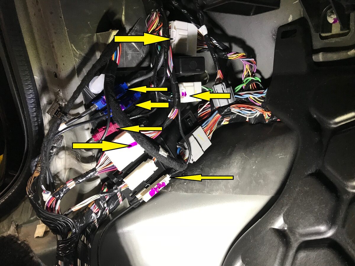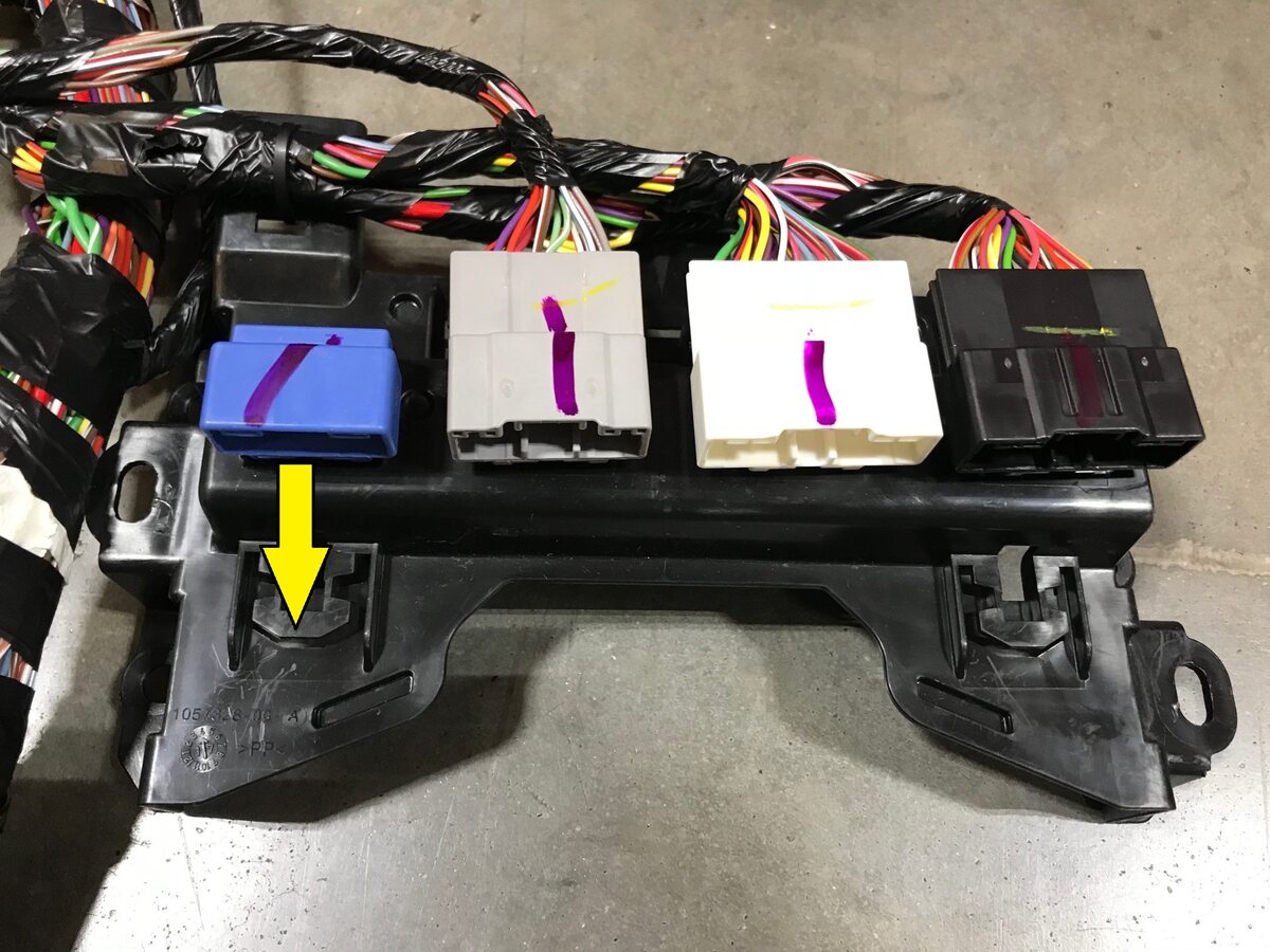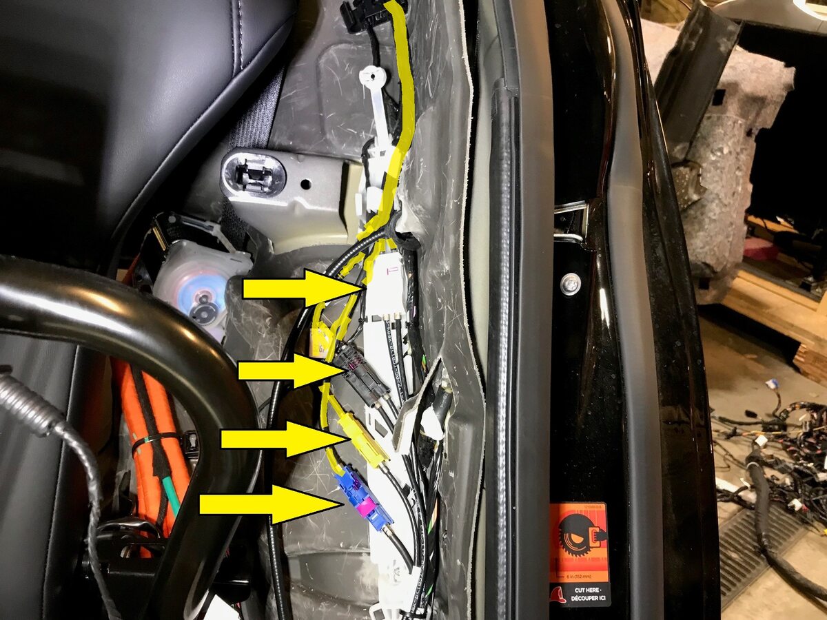 Note3x connectors, 2x harness clips, Tuck excess harness under carpet to prevent NVH concern