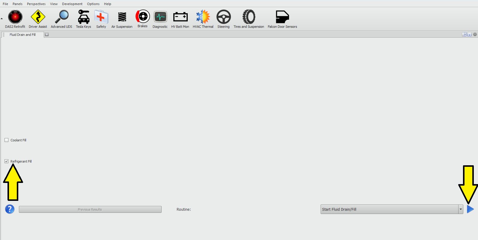 NotePathway in toolbox is as follows, Panels > Thermal > Fluid Drain and fill > Check the box for Refrigerant Drain and Fill > Click the Play Button to begin routine