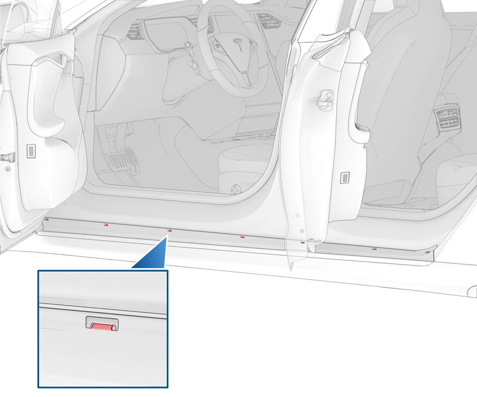 - Release the rocker panel molding lower clip covers (x5).