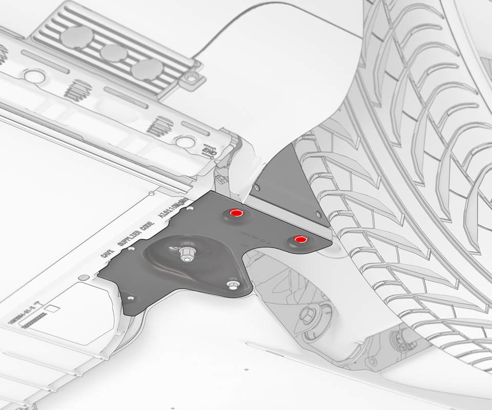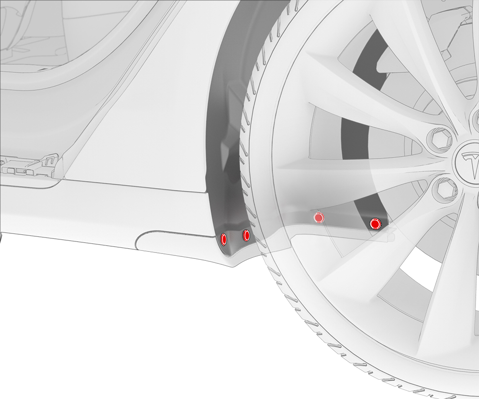 - Remove the bolt behind the LH rear wheel well liner that attaches the LH rear wheel fairing to the vehicle, and then remove the fairing (torque 10 Nm).
