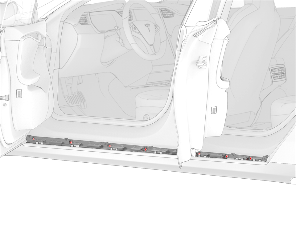 - Remove the screws (x7) that attach the LH rocker panel molding to the body (torque 1.5 Nm).