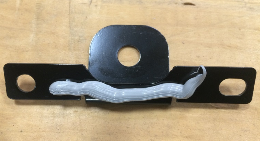 - Apply a bead of ThreeBond 1216E Silicone Sealant along the bottom of the new aero shield support tab