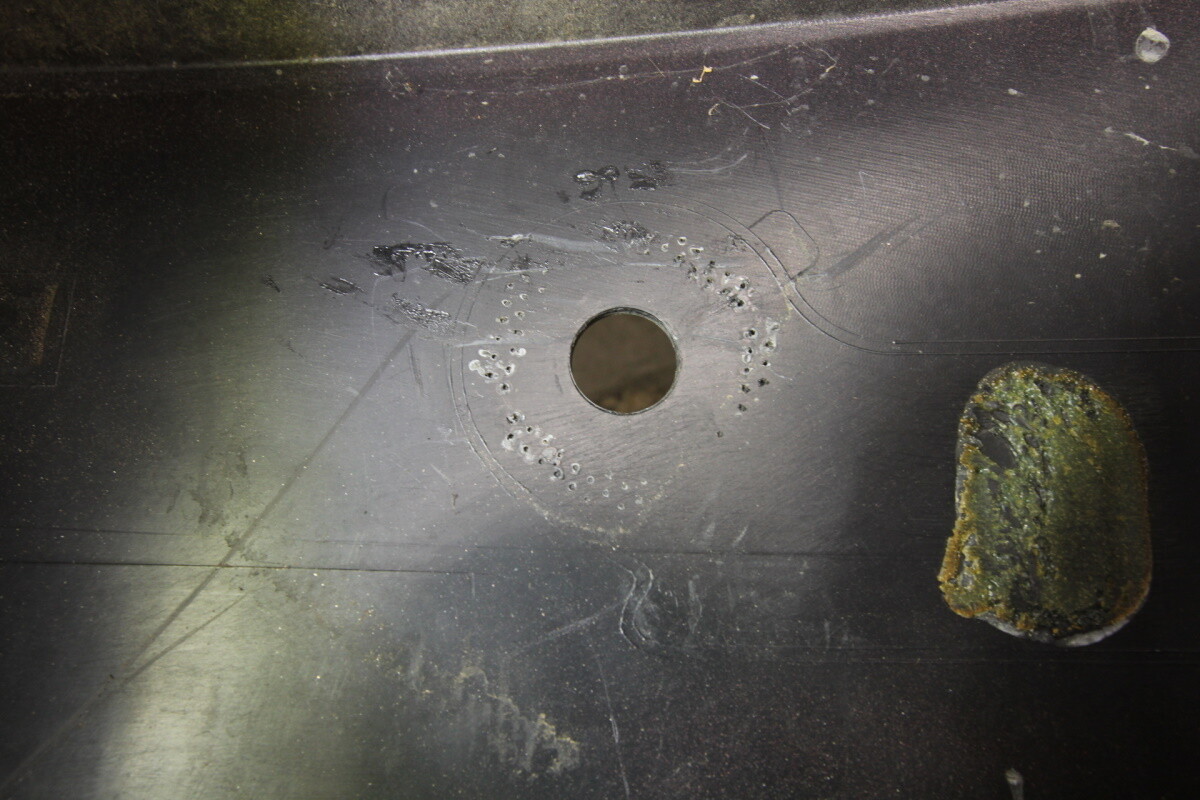 Test fit the new retainer with the parking distance sensor installed. Mark