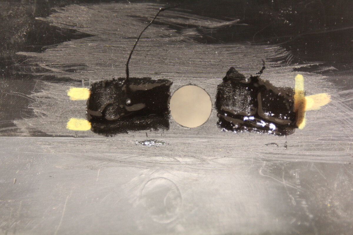 CAUTIONPrevent adhesive from entering the center hole of the retainer.CAUTIONClean off any residue that may enter with an IPA wipe. Otherwise, the parking distance sensor will not seat properly.NoteInstall the fixture tool to secure the retainer while adhesive cures.NoteThe fixture tool is self centering.