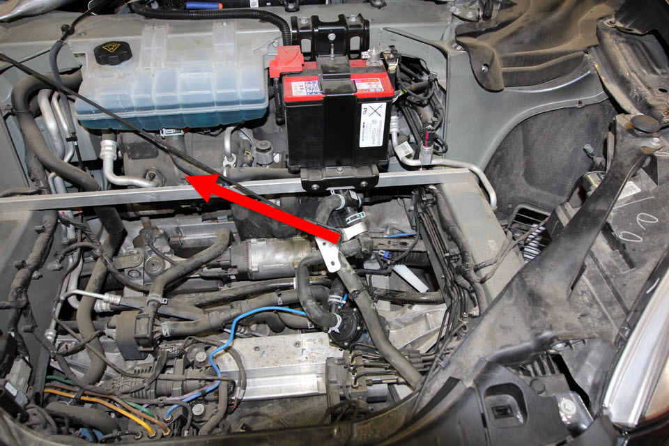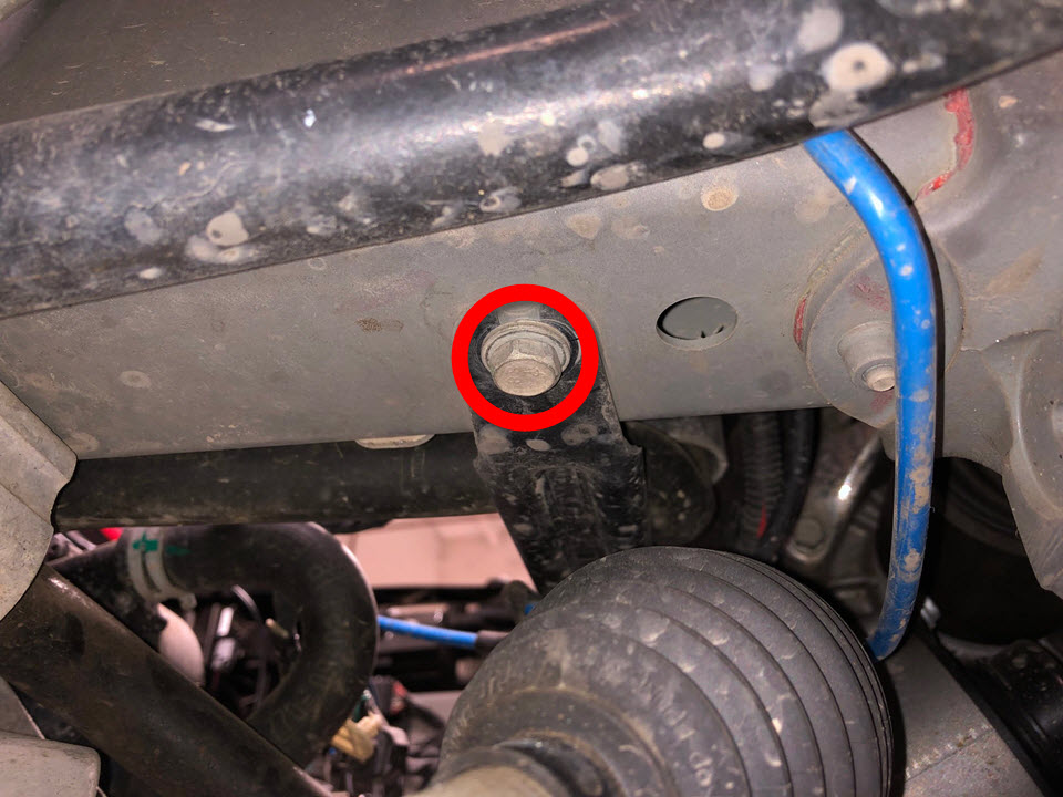- Remove the upper bolt that attaches the LH front subframe brace.