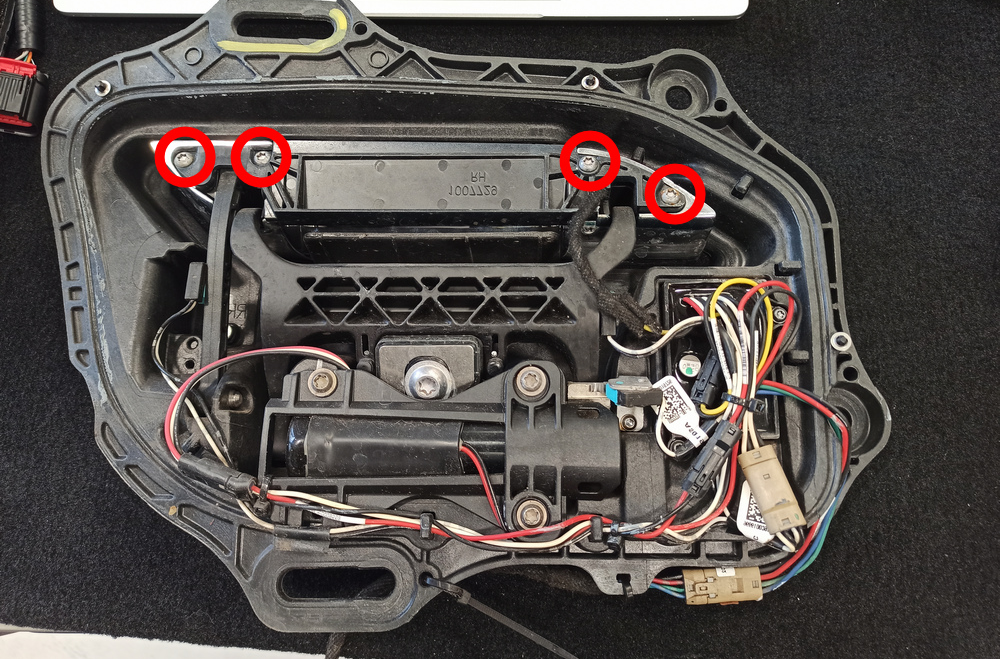 - Remove the screws (x5) that attach the new door handle assembly rear cover.