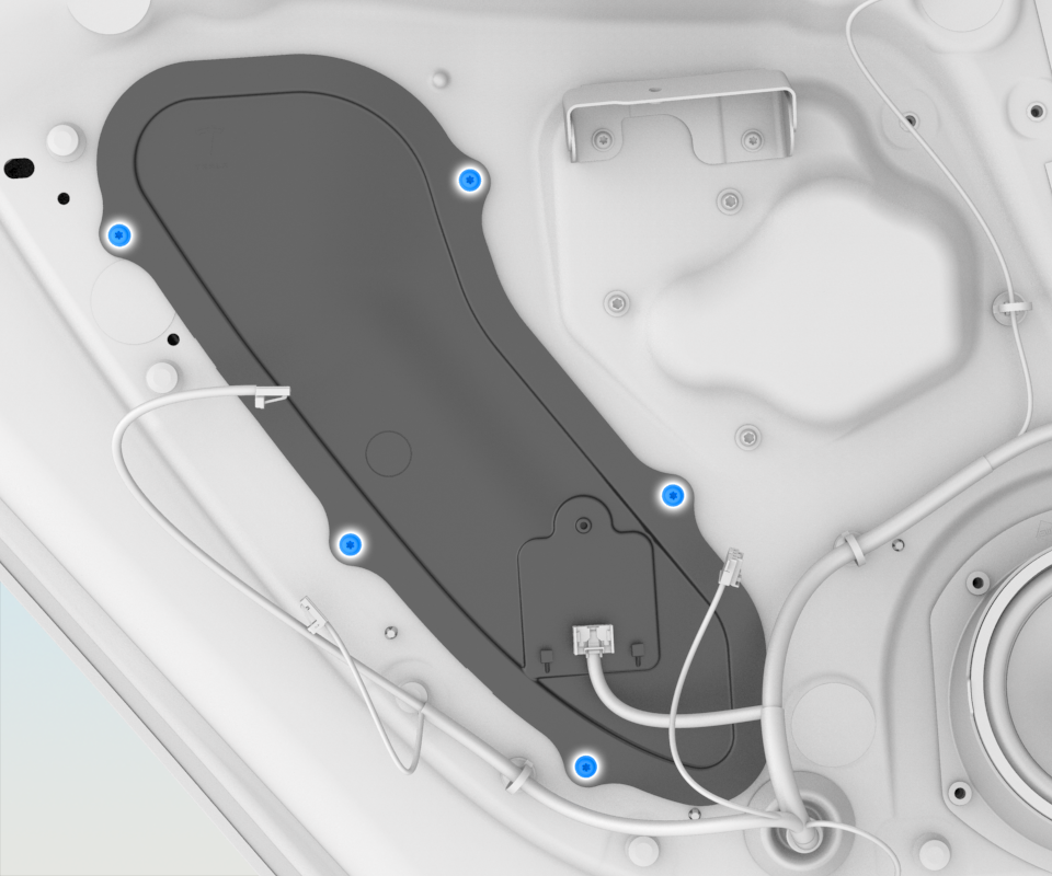 - Install the door handle assembly rear cover, and then tighten the screws (x5) that attach the cover to the assembly (torque 2 Nm).