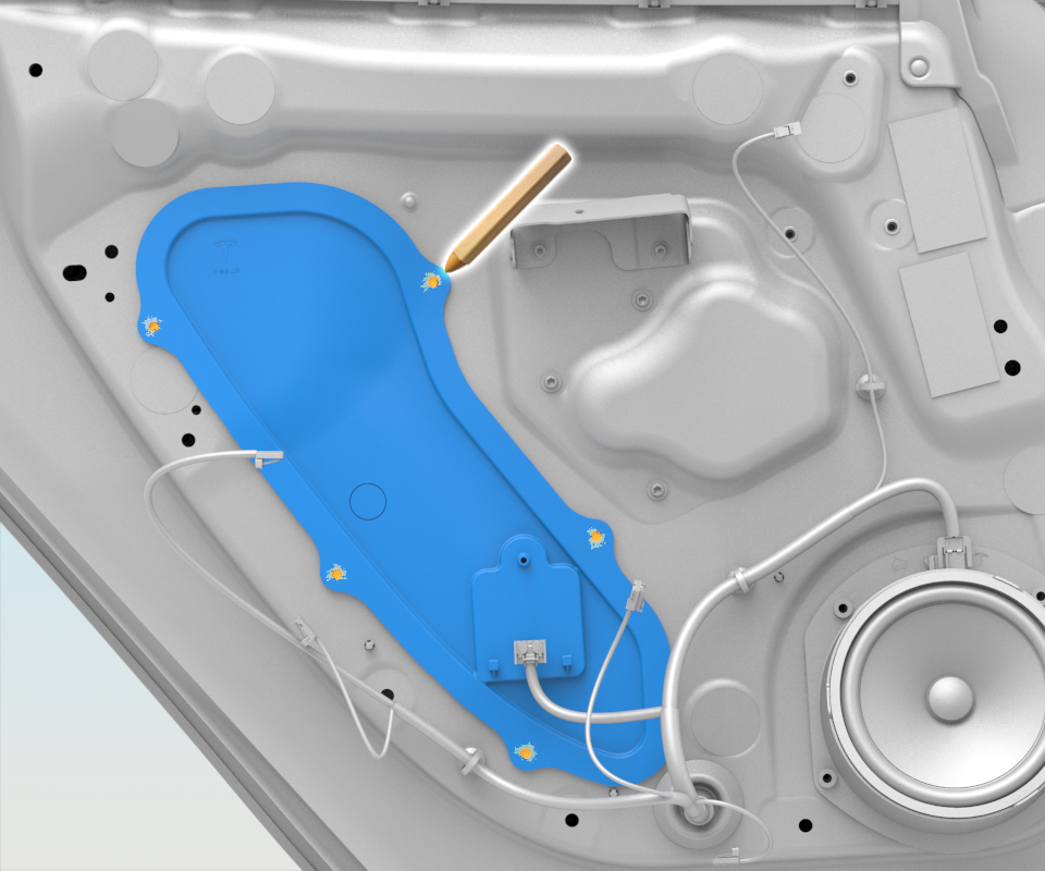 - Remove the LH rear door trim panel. See Panel - Door Trim - Rear - LH (Remove and Install).
