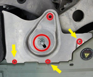 - Remove the bolts (x3) that attach the LH shear plate to the vehicle (torque 6 Nm).