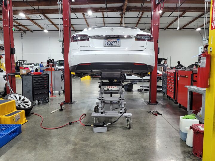 - Raise the rear subframe into position for installation.