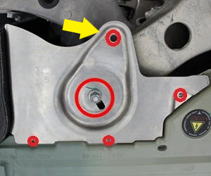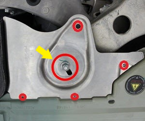 - Remove the bolt that attaches the LH shear plate to the vehicle (torque 4 Nm).